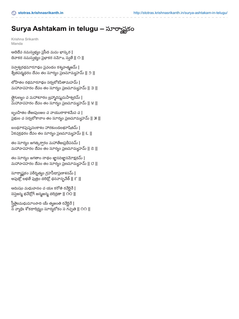 Surya Ashtakam In Telugu స రయ షటక Pdf